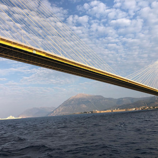 We continued our journey towards the 2,380-metre-long Rio–Antirrio bridge. This multi-span cable bridge crosses the Gulf of Corinth (between Rio on the Peloponnese and Antirrio, mainland of Greece).