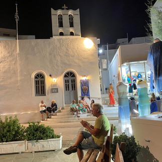 The island feels relaxed and is definitely not for party animals. Great food, nice scenery, good walking tracks and a lovely atmosphere. There are many traditional churches and monasteries, several are high up on the mountain ridge (check out the monastery light at night) and the same one next day during day light.