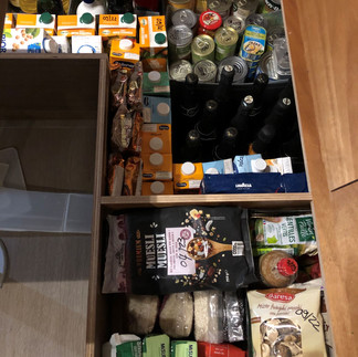 We stored long life items (incl. 60 blocks of chocolates 😏 in various storage locations. We will get more fresh veg and fruit along the way.