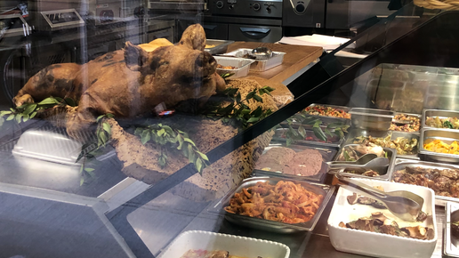 The butchers and grocery stores often have full pigs on display and you can just buy some pieces of it. On the other picture below you can see some sea urchins. Various sea urchin dishes are on offer eg spaghetti with sea urchin meat, which is a traditional Sardinian speciality (we have not tried it).